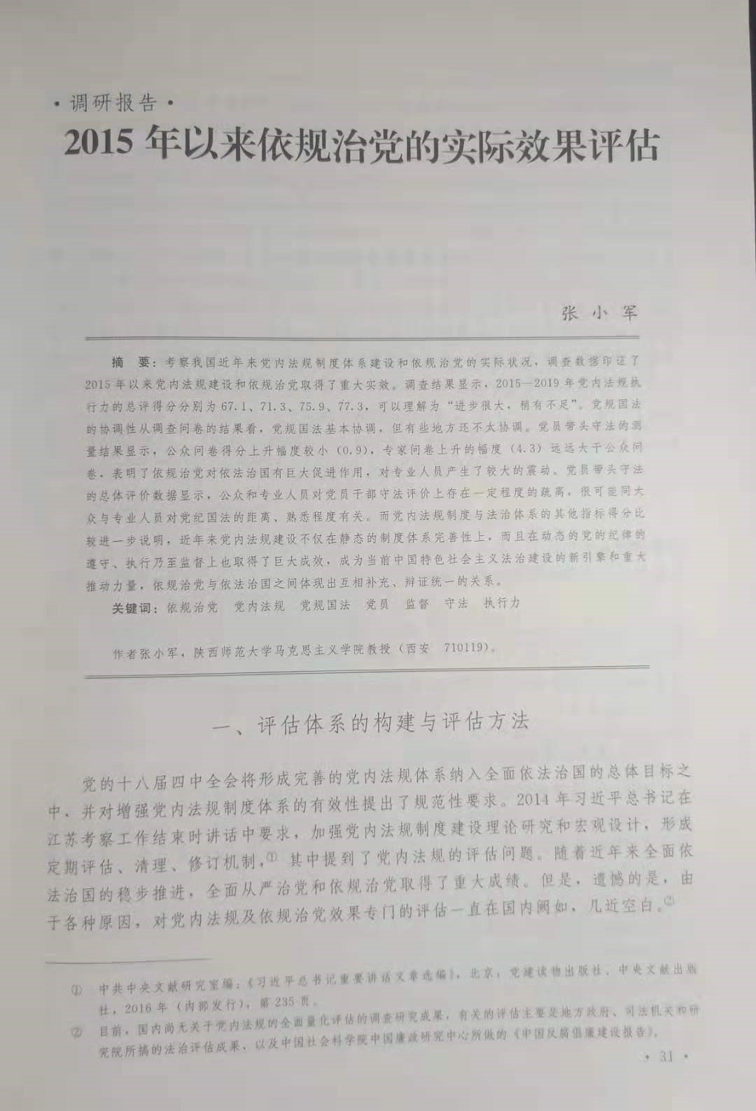 公司张小军教授撰写的论文《2015年以来依规治党的实际效果评估》,在《中国社会科学内部文稿》2021年第2期发表,全文篇幅共15个页面,约1.2万字。