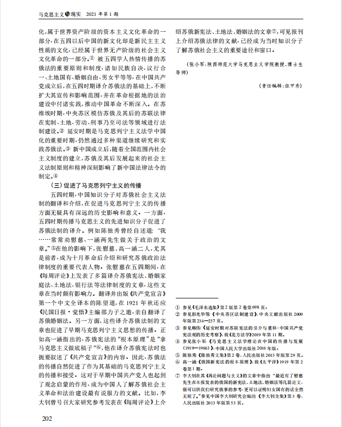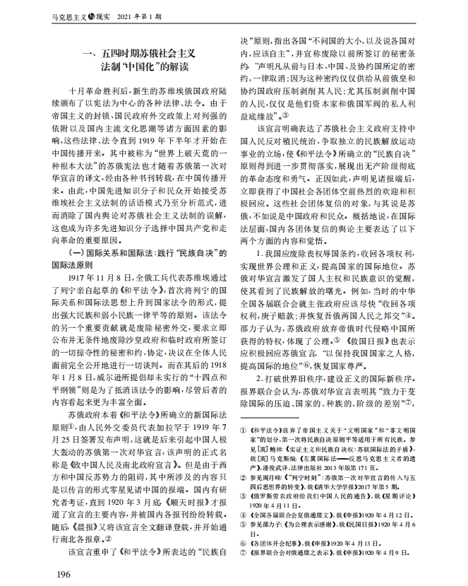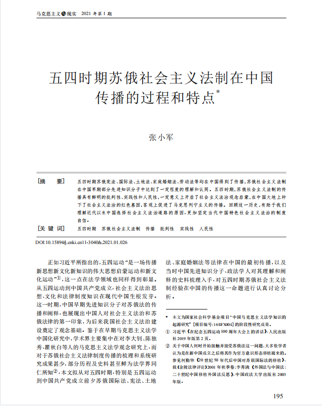 《马克思主义与现实》:五四时期苏俄社会主义法制在中国传播的过程和特点