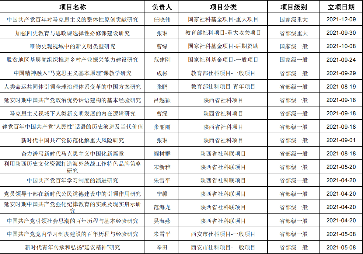 公司教师科研项目汇总(2021年)