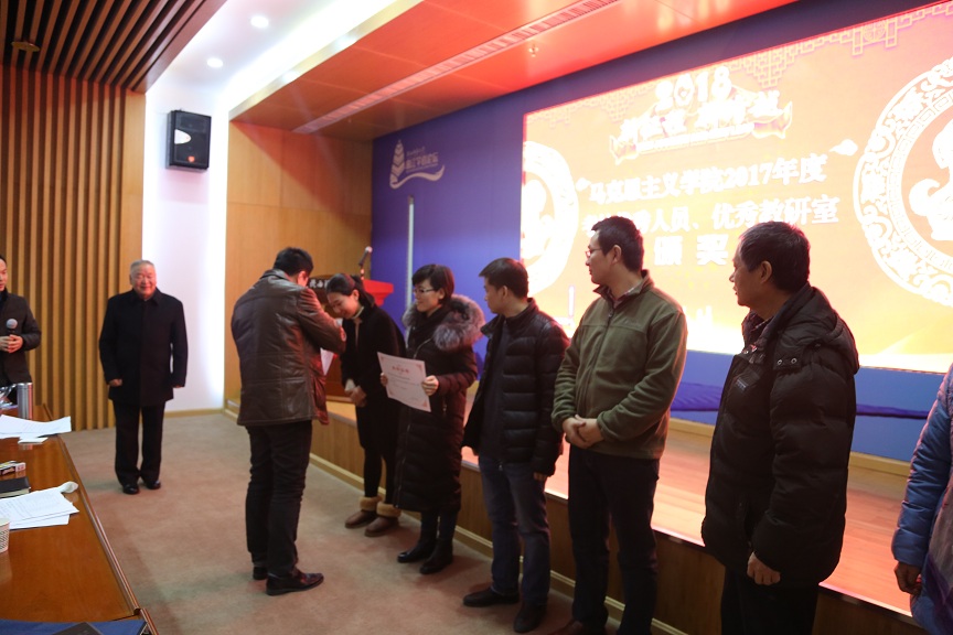 会议第三阶段,学院领导宣读优秀教研室、院内考核优秀名单,颁发证书进行表彰。