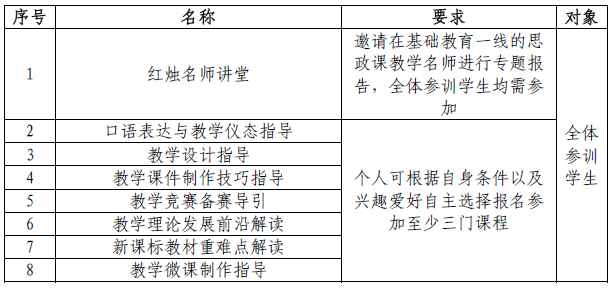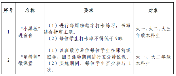 本期师范生教学技能提升计划由习惯养成项目、能力提升项目、技能竞赛项目三部分组成:
