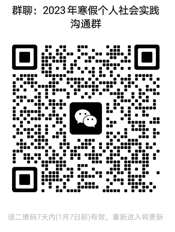 各实践团队负责人务必于1月2日20:00前加入“2023年寒假社会实践团队负责人沟通群”,根据群内通知要求与1月8日前提交相关报名材料。