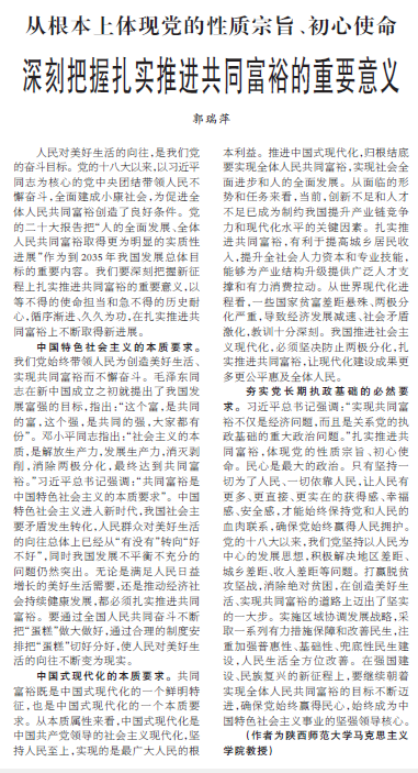 7月26日,《人民日报》刊发学院郭瑞萍文章:深刻把握扎实推进共同富裕的重要意义
