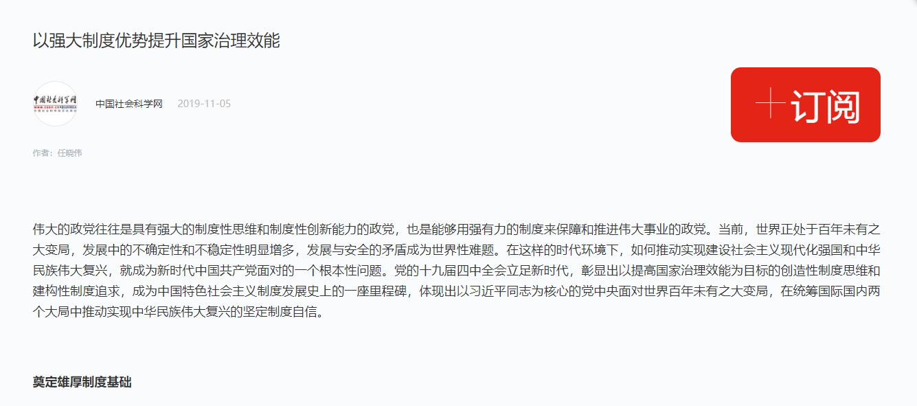 11月5日,中国社会科学网刊发公司任晓伟教授文章:《以强大制度优势提升国家治理效能》,之后学习强国进行转发。