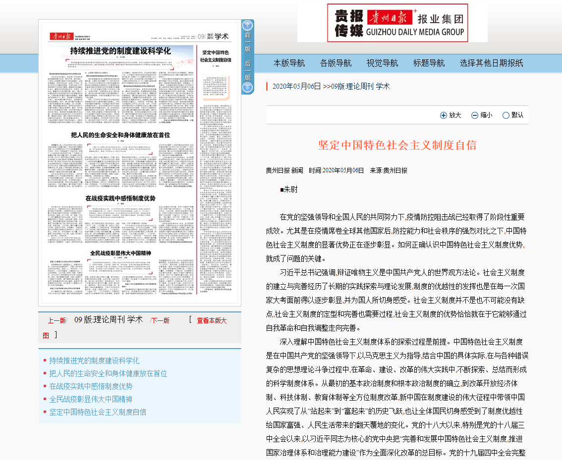 5月6日,贵州日报刊发公司朱尉副教授文章:《坚定中国特色社会主义制度自信》。