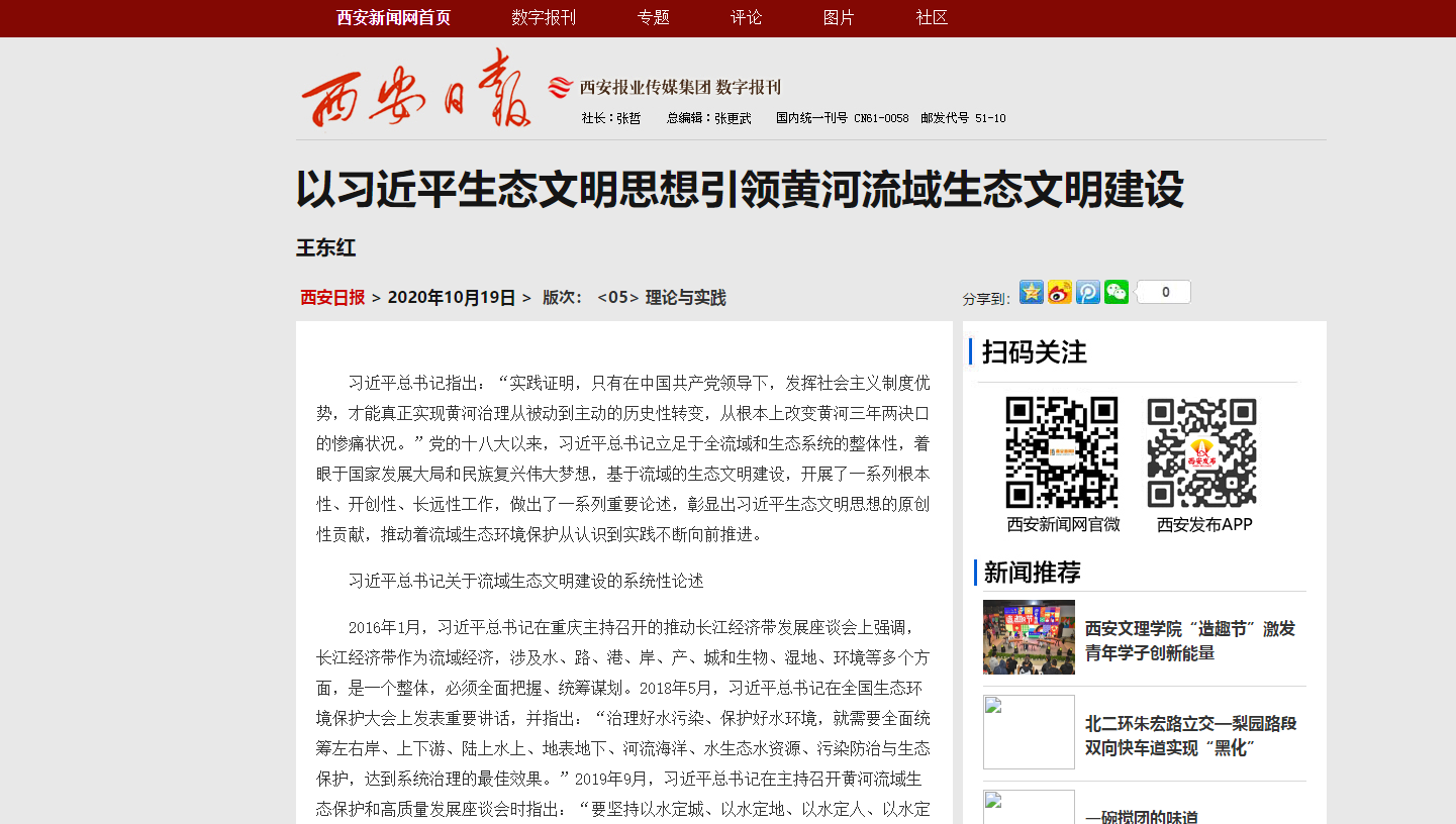 10月19日,《西安日报》刊发公司王东红副教授文章:《以习近平生态文明思想引领黄河流域生态文明建设》。