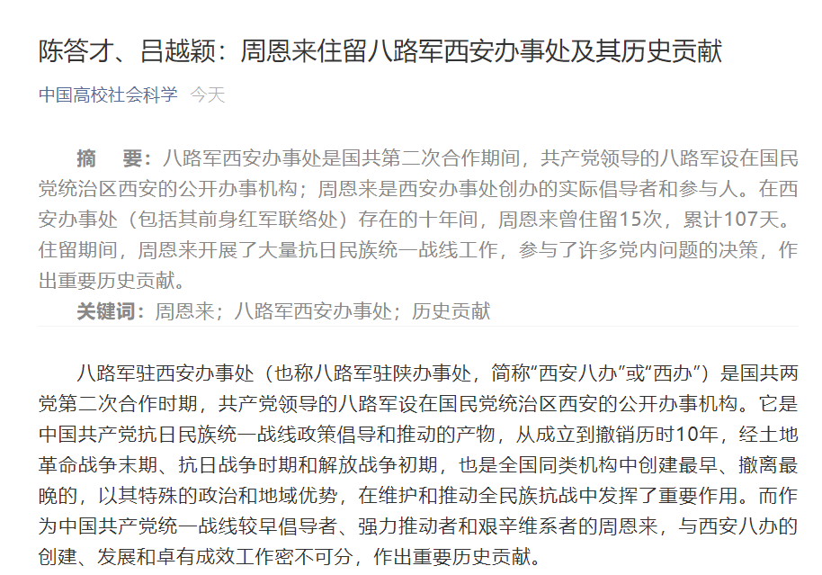 12月22日,《中国高校社会科学》刊发公司陈答才教授、吕越颖讲师文章:《周恩来住留八路军西安办事处及其历史贡献》
