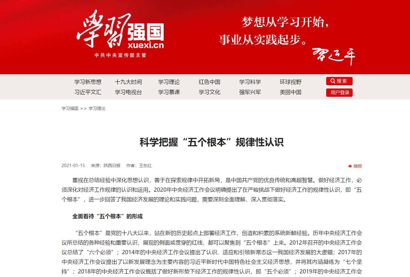 “五个根本”在总结2020年经济社会发展新成就基础上,集中反映了统筹国内国际两个大局、统筹疫情防控和经济社会发展的丰富实践。2020年是“十三五”规划收官之年,更是新中国历史上极不平凡的一年。面对严峻复杂的国际形势、艰巨繁重的国内改革发展稳定任务,特别是新冠肺炎疫情的严重冲击,之所以交出一份人民满意、世界瞩目、可以载入史册的答卷,中华民族伟大复兴向前迈出了新的一大步,关键就在于以习近平同志为核心的党中央坚强领导、全党全军全国各族人民团结奋战和在实践中深化了对在严峻挑战下做好经济工作的规律性认识。2021年是我国现代化建设进程中具有特殊重要性的一年,做好经济工作意义重大。站在“两个一百年”奋斗目标的历史交汇点上,为开局“十四五”、开启全面建设社会主义现代化国家新征程,谋划中国经济发展大计而提出的“五个根本”,更富有前瞻性、长远性、针对性。