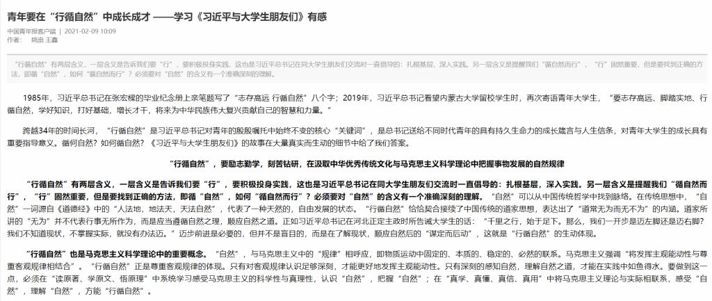 “行循自然”,要励志勤学,刻苦钻研,在汲取中华优秀传统文化与马克思主义科学理论中把握事物发展的自然规律