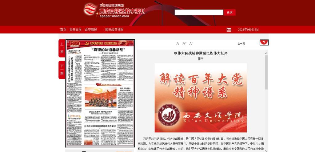 6月16日,《西安日报》刊发公司张琳教授文章:《以伟大抗战精神激励民族伟大复兴》。