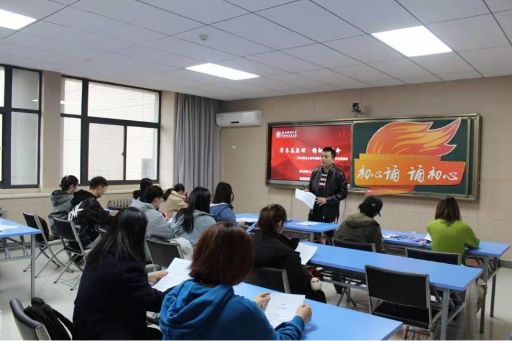 为进一步贯彻落实习近平总书记关于高校思想政治理论课建设的重要论述,深入推进公司思想政治理论课改革创新发展,将新媒体融入教学,扎实提升思政课程铸魂育人成效,打造重点课程和“金课”,公司张鹏老师和李娟仙老师组织授课班员工开展“学经典,悟原理,诵初心使命——《马克思主义基本原理》课程实践教学”主题活动。2020年11月20日下午,张鹏和哲学与政府管理学院的12位同学来到学院四层教师能力训练室举行实践教学活动。