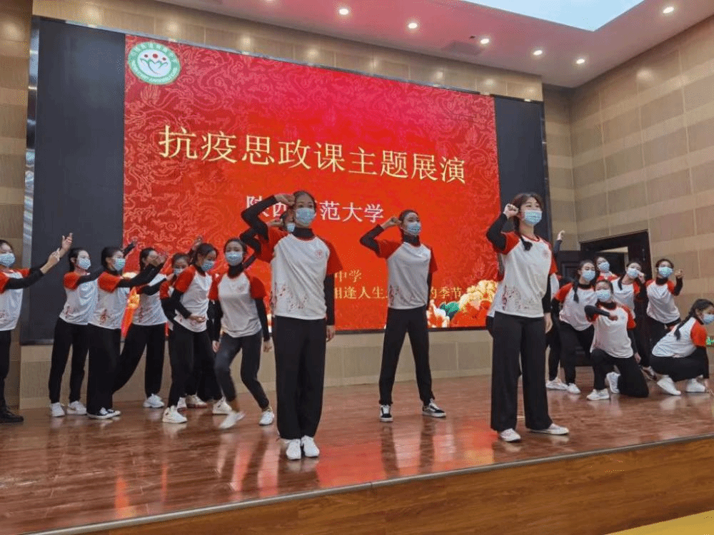 活动中还特别设计了两个互动环节。“舞动青春”节目中,舞蹈专业的员工现场教学,与初中生一起学习了民族舞蹈动作,感受多民族文化;“翰墨传情”节目中,书法专业同学邀请初中生共同创作抗疫书法作品,感受传统文化。