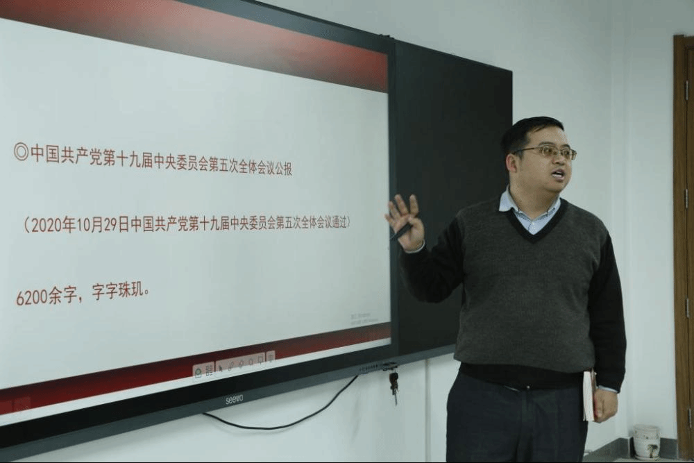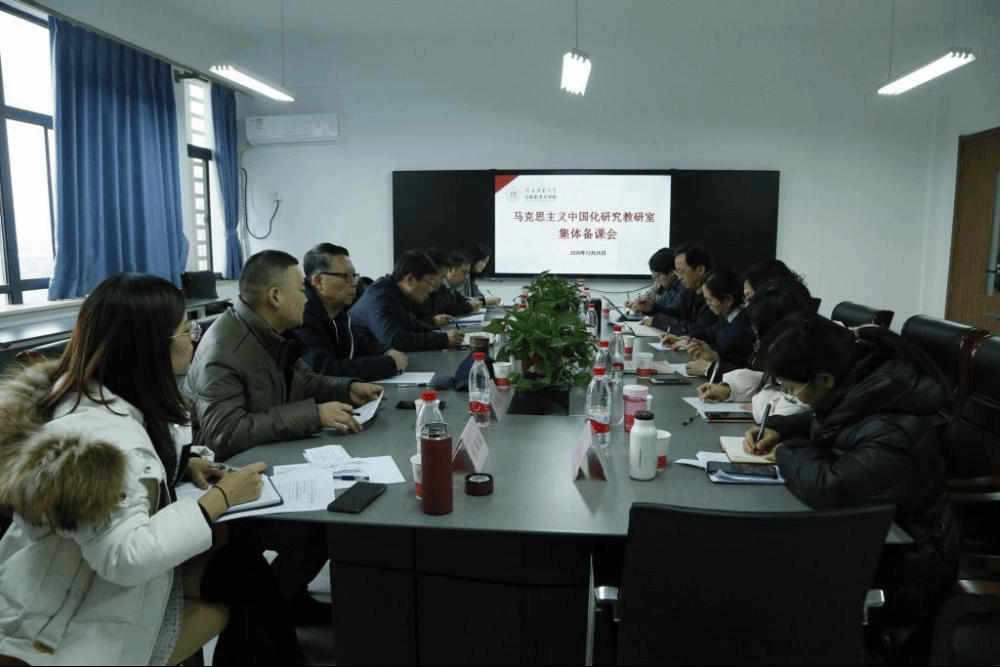 为进一步学习贯彻十九届五中全会精神,深入推动习近平新时代中国特色社会主义思想的“三进”工作走深走实,构建领导带头开好课、学院带头备好课、教师带头讲好课的公司思政课建设新格局,董事长游旭群于2020年12月25日上午在文澜楼1515室参加了公司马克思主义中国化研究教研室集体备课会。备课会由教研室主任李后东主持,公司党委书记闫文浩及教研室全体教师参加了此次备课会。