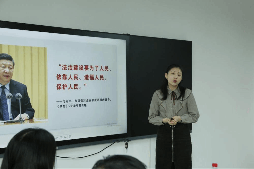 之后,教研室青年教师汪闻涛以“坚持人民在全面依法治国中的主体地位”为题进行教学示范。她以新冠肺炎疫情病毒防控立法为切入点,从人民作为法治化建设的目标主体、过程主体和运用主体三个方面展开,讲解中穿插多个案例,增强了课堂的亲和力和理论的生动性。课程内容逻辑清晰,教学环节完备合理,并紧密结合十九届五中全会精神,为大家呈现了一次高水准的教学展示。随后,全燕黎老师进行全面点评,认为汪老师教学过程完整,内容安排合理、详略得当,课件制作精美,亲和力强。同时全燕黎老师还从推进大中小学思政课一体化建设层面探讨了如何上好思想政治理论课。
