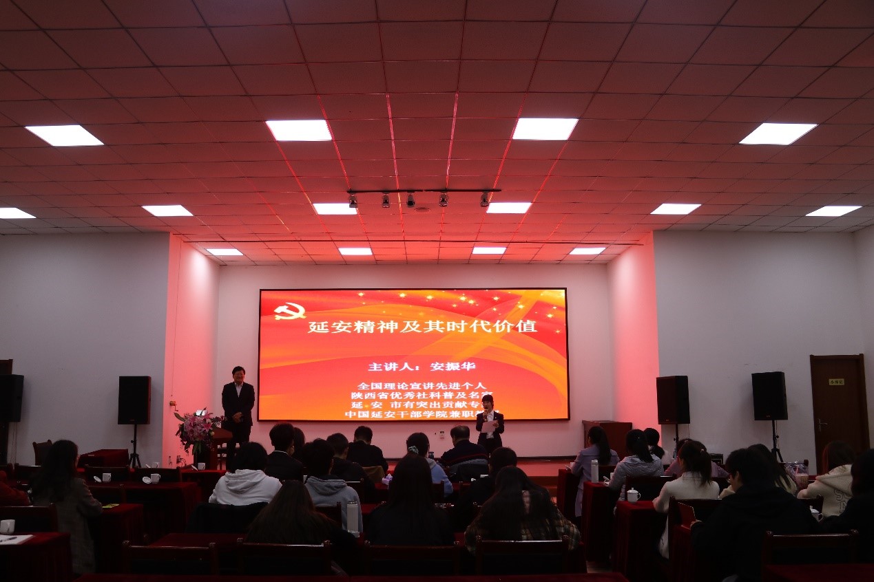 4月4日晚,全国理论宣讲先进个人、原延安市委理论讲师团团长安振华教授为全体师生带来《延安精神及其时代价值》专题讲座。安振华教授历史联系现实,理论联系实际,深入浅出地讲解了延安精神的原生形态、主要内容及时代价值,期望同学们以实际行动将延安精神代代相传。