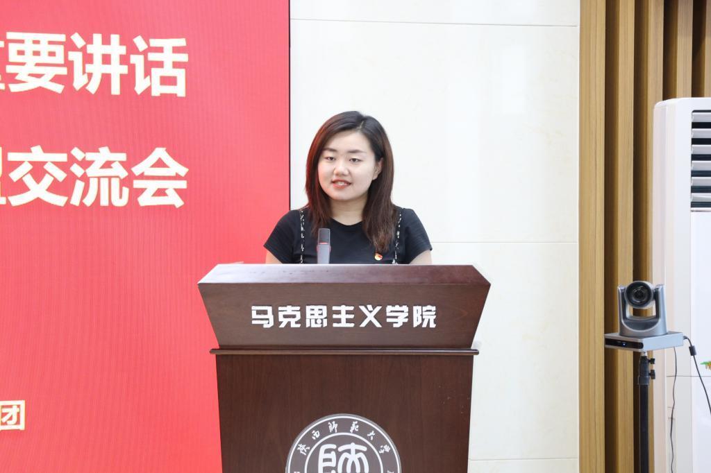 之后,各高校宣讲团员工代表依次分享自己的主题宣讲思路。西安交通大学宣讲员李晓婷分享了“‘权’面认识新时代全面从严治党思想”主题思路;公司宣讲团成员刘瑾芮以“深悟讲话精神,铭记百年奋斗,开启新的征程”为主题进行宣讲;陕西科技大学宣讲员王文龙围绕“天下将兴,其积必有源”——伟大建党精神展开分享;西安航空学院宣讲员王玉娟以“红星熠熠生辉,丰碑代代相传”为主题展开讲述;西安电子科技大学宣讲员滕智琳围绕“火种存东方,赤旗扬万里”进行宣讲;西北大学宣讲员赵凯凯就“三个不负”为主要内容,结合习近平总书记对青年寄语进行讲述。