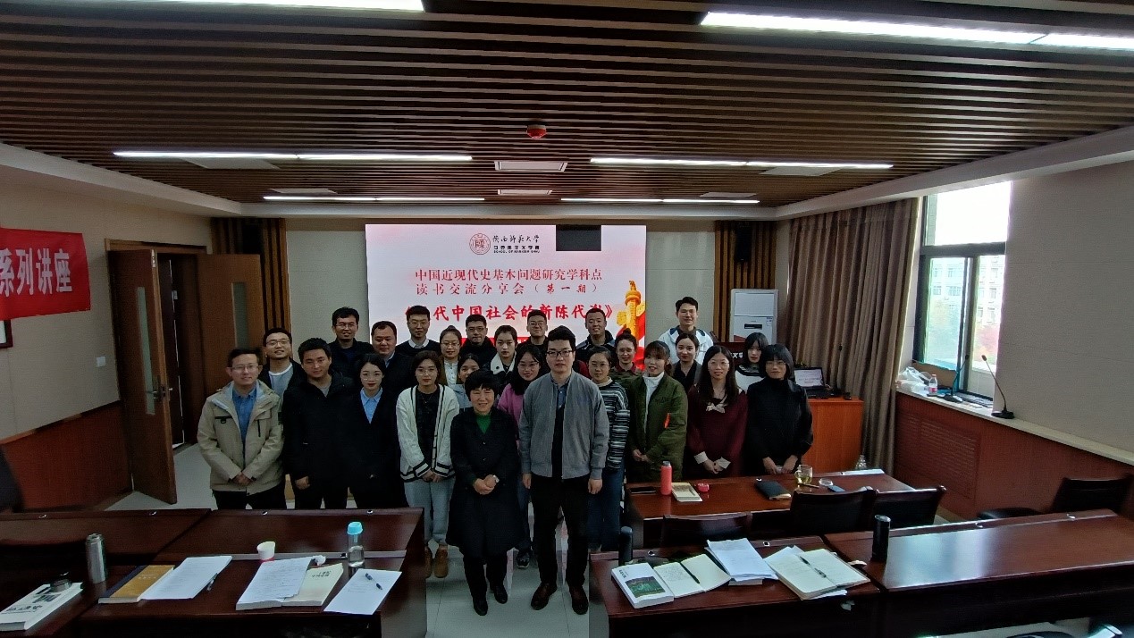 秋意深浓、秋兰飘香。11月5日,中国近现代史基本问题研究学科点在文澜楼大中小会议室举行本学期第一期读书会,博士生导师王晓荣教授、中国近现代史纲要与中共党史教研室主任殷一博副教授以及学科点硕博士研究生共30余人参加此次活动。