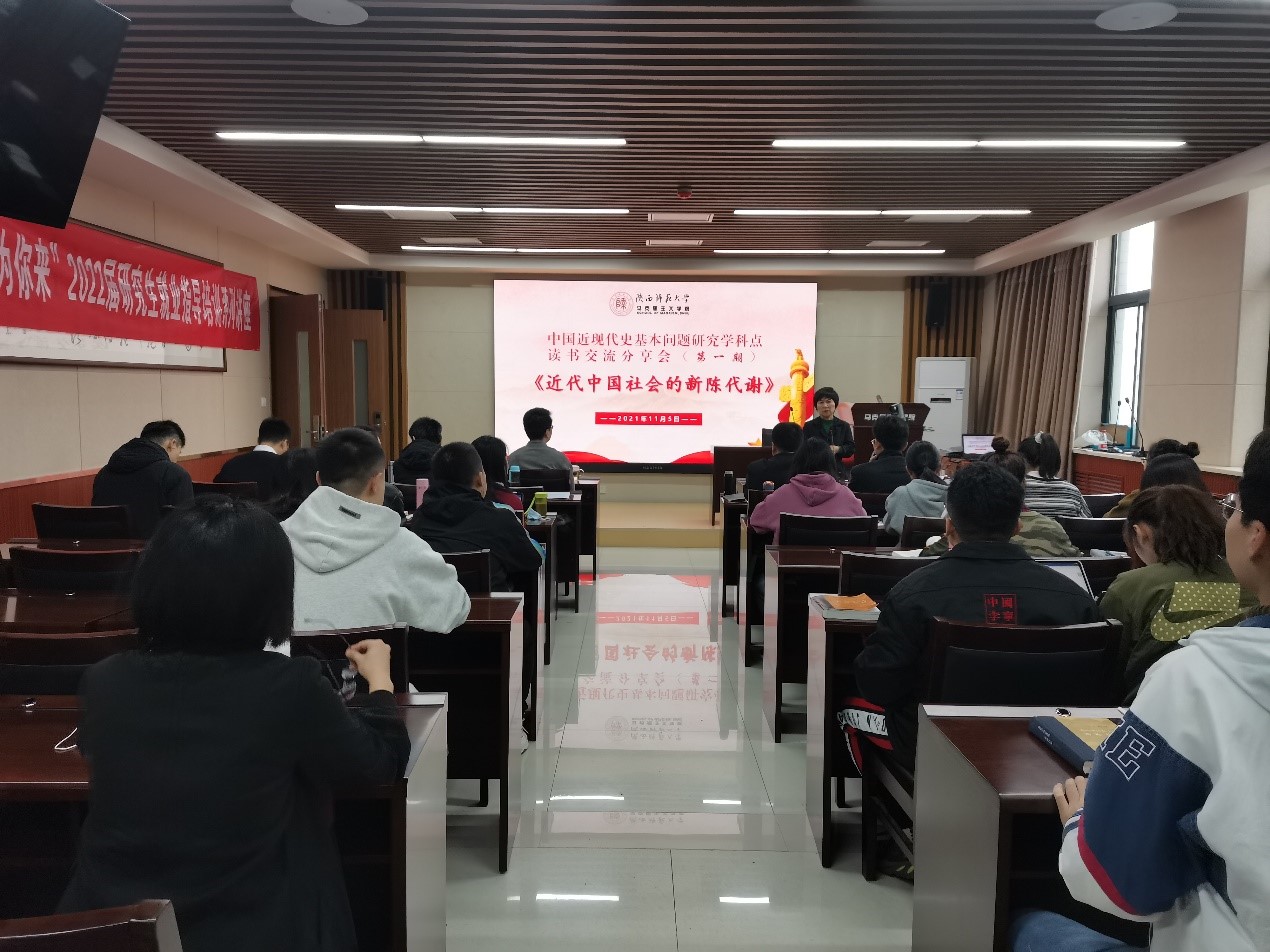 为了贯彻习近平总书记在党史学习教育大会上的讲话精神,落实学史明理、学史增信、学史崇德、学史力行的要求,促进师生交流、增进学术氛围,服务本专业员工的学习与发展,中国近现代史基本问题研究学科点结合自身特点,于本学期开始举办“读史增识 只眼千年”系列读书会,选取党史、近现代史方面的经典著作,通过教师带读、员工分享、交流讨论等方式提供师生交流的平台,提升员工的学习水准。本期读书会围绕著名历史学家陈旭麓所著的《近代中国社会的新陈代谢》展开。