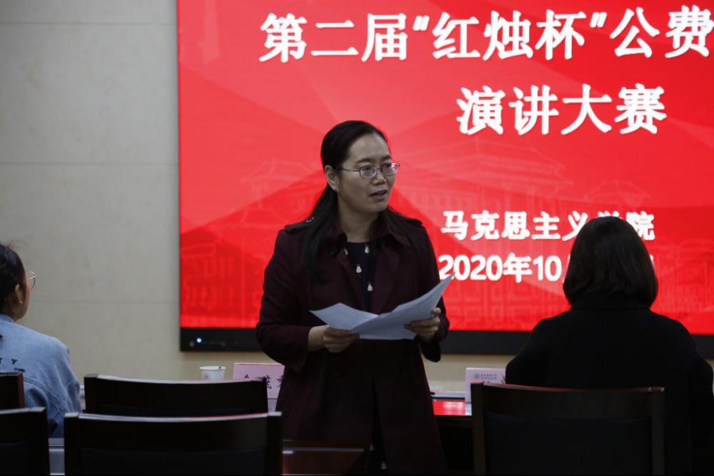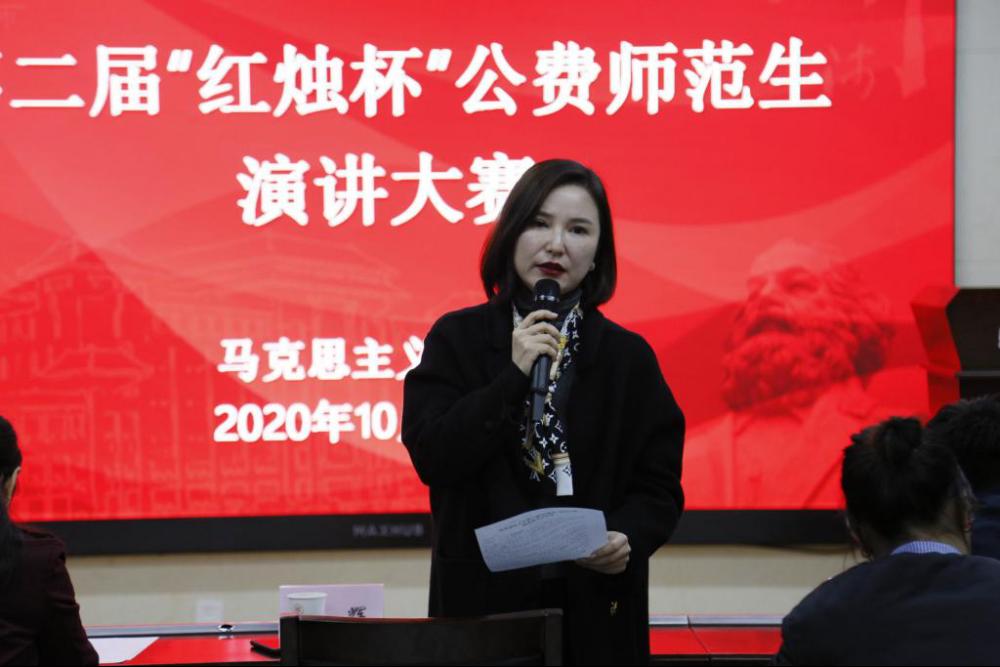2020年10月30日下午,公司第二届“红烛杯”公费师范生演讲比赛在学院大中小学思政课一体化研究中心顺利举办。学院董辉教授、全燕黎副教授、本科生辅导员崔林刚出席比赛并担任评委,活动由2018级本科生陈静主持。